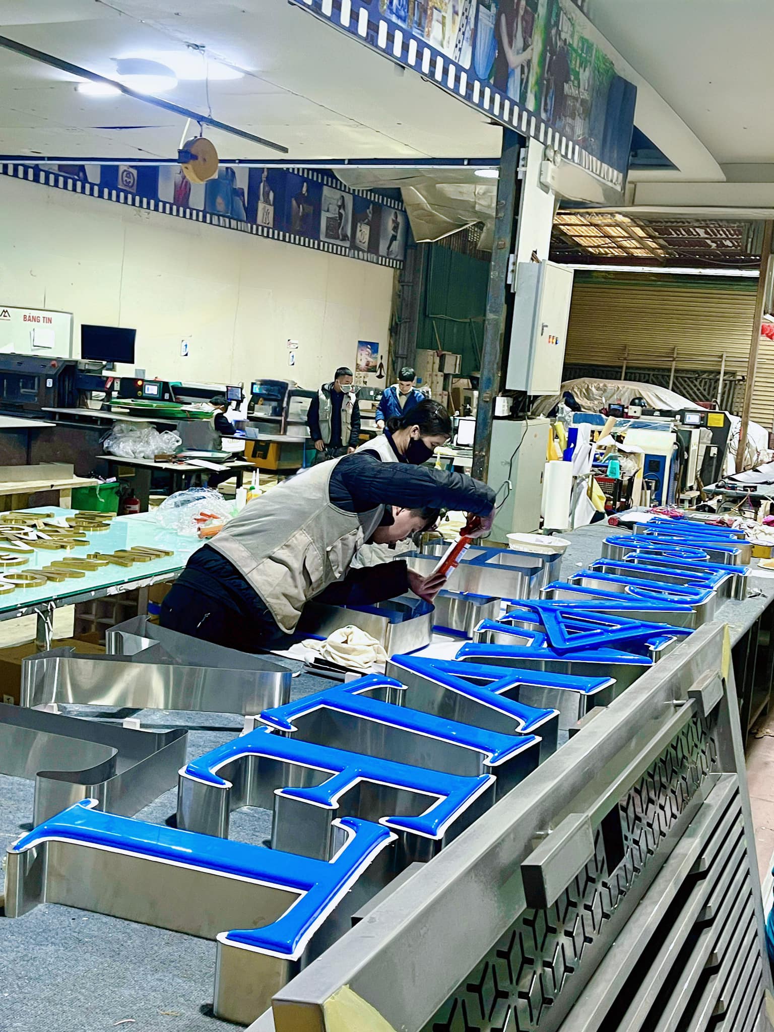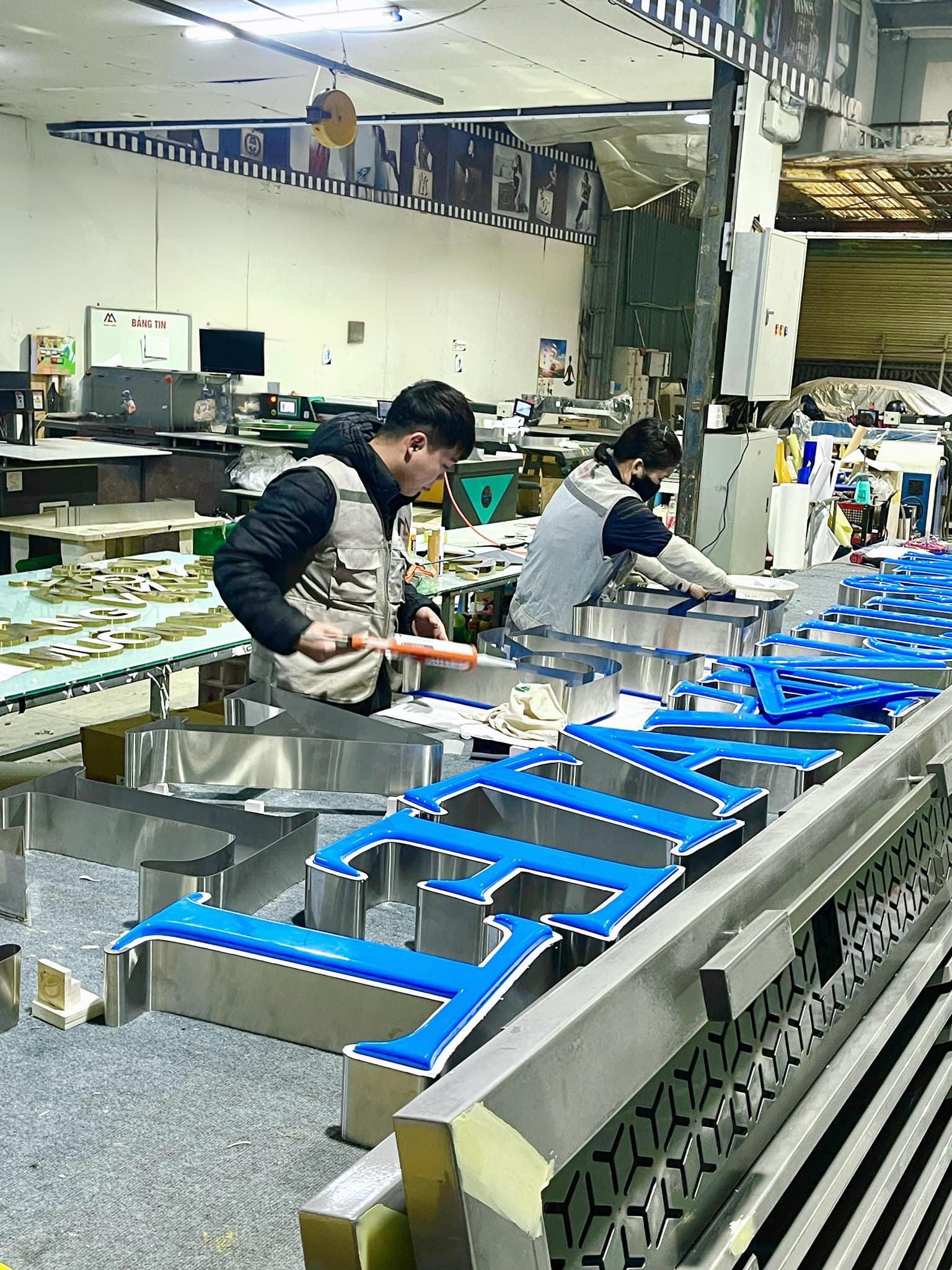 - Gia công chữ kim loại: Inox, Tole,... như Biển tòa nhà , Biển văn phòng , biển công ty ....