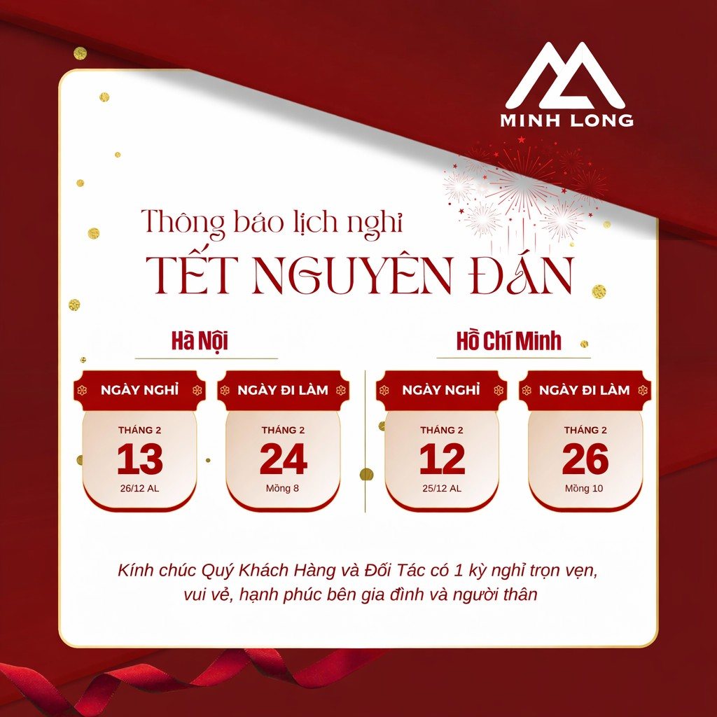 Để chào đón Tết Nguyên Đán 2026, Minh Long xin thông báo lịch nghỉ Tết như sau: